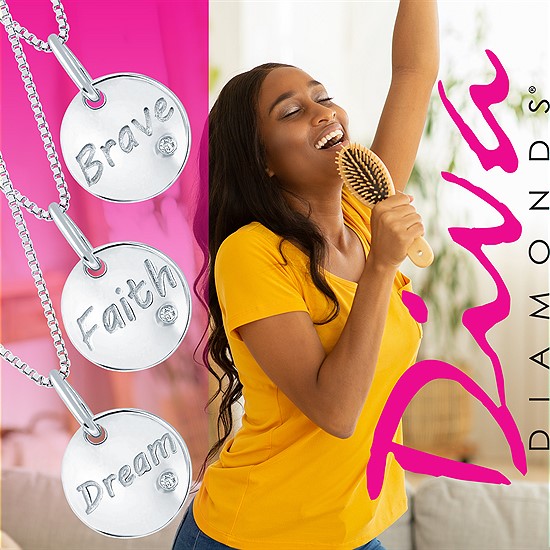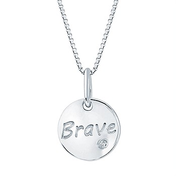 Diva Diamonds® Brave Disc Pendant In Sterling Silver With .01 Ct. Diamond With 18" Box Chain (Adjustable To 16") And Lobster Claw Clasp