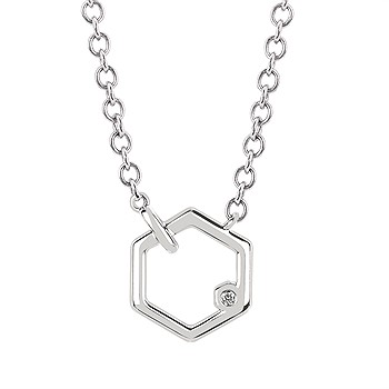 Diva Diamonds® Hexagon Necklace In Sterling Silver With .01 Ct. Diamond With 18" Attached Chain