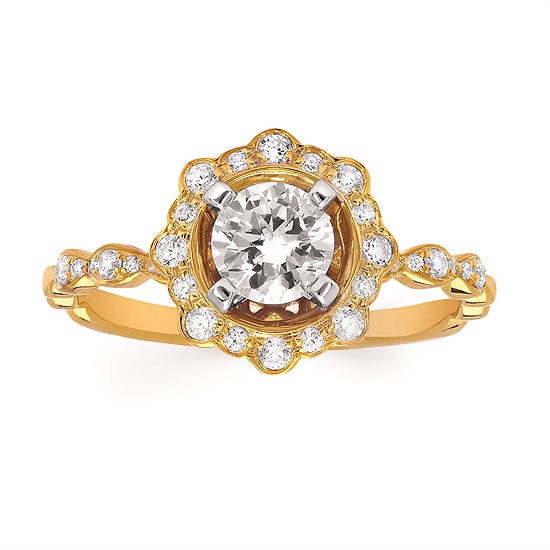 Engagement Ring Forever ElegantĀ® 1/4 Ctw. Diamond Semi Mount shown with 3/4 Ct. Round Center Diamond in 14K Gold