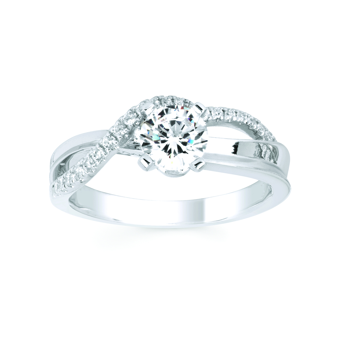 Engagement Ring Forever ElegantĀ® 1/8 Ctw. Diamond Semi Mount shown with 3/4 Ct. Round Center Diamond in 14K Gold