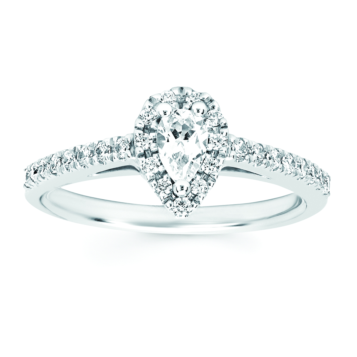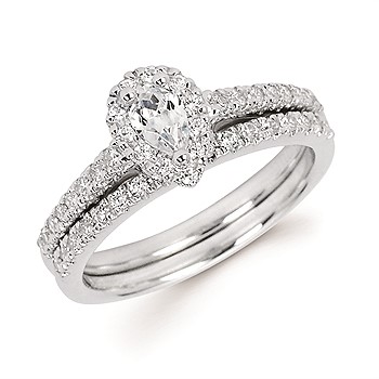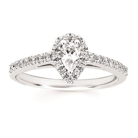 Engagement Ring Halo Bridal: 1/4 Ctw. Diamond Halo Semi Mount available for 1/4 Ct. Pear ShapeCenter Diamond in 14K Gold